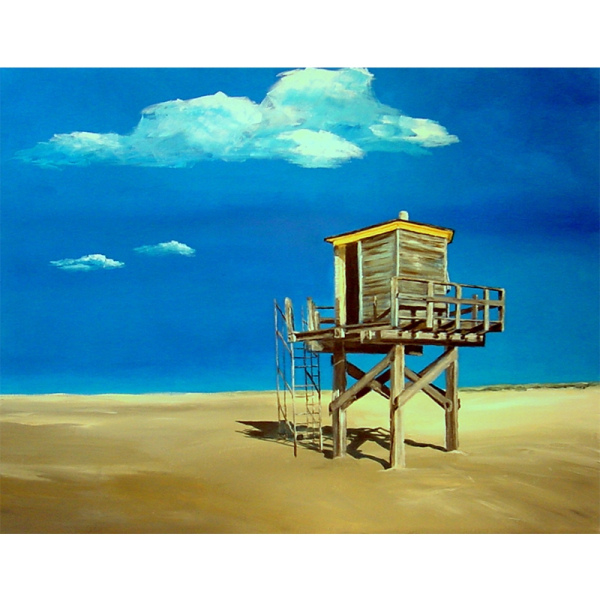 Het oude drenkelingenhuisje op de Vliehorst, acryl op doek, 70x90